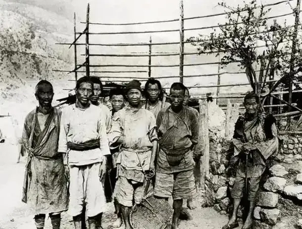 这群人站在栅栏前,衣襟全是补丁,有人拎着破筛子,有人攥着草绳,站姿却挺,像是在说,我们还在,我们没倒下,眼神是硬的。