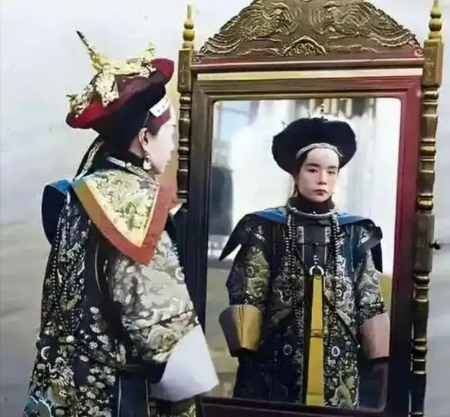 最后这位穿的朝袍披领压得铁板一块,对镜子立着,眼神不躲不闪,像在对自己点头,风雨要来不来,还是得把这身气派穿圆满。