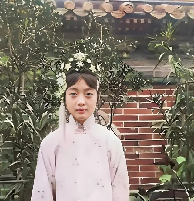 图中发间一圈白花叫步摇冠,粉色褙子上星星点点小绣,脸朝镜头不怕看,像是刚学会对镜头不眨眼的年纪,妈妈看见这张笑我说,小时候你拍照也这么直,看谁都不怯场。