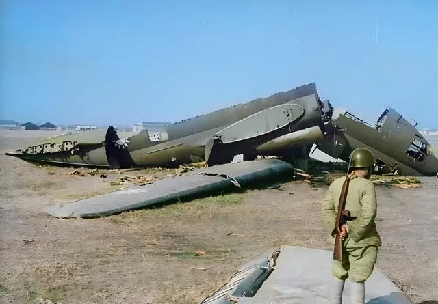 这片荒地上的大块铁是报废的运输机,机翼比屋顶还宽,伤痕一条条裂着口子,阳光照得铅绿发亮,站岗的兵把枪背在身后,脚边是干掉的草根,风一吹灰线就跑,没什么好说的,飞不起来的翅膀最沉,他却还是要守着。