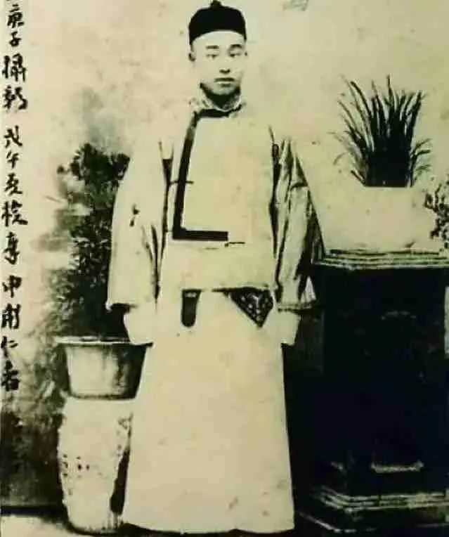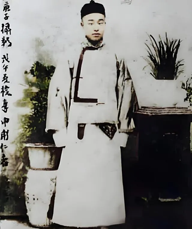 这个白底长袍的少年叫梁鼎芬,衣襟上那根黑边绦带像一条直尺,帽檐小小的,站姿有点拘谨,他后来成了光绪帝的侍讲学士,可少年像片里看不出那股子拗劲,只觉得屋角那盆兰草修修整整,像他一辈子拿不掉的规矩。
