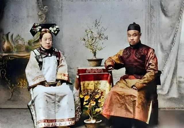 这个小茶几只巴掌大,桌布红底金边,善坤格格与丈夫贡桑诺尔布一左一右坐着,桌面上摆一盆木樨,叶片尖尖的,屋里光线打在衣料上,亮处像水,暗处像墨,外人看是婚照,里头却是政治,北不断亲这四个字,就藏在两人袖口的褶子里。