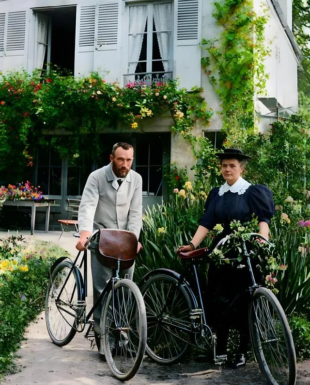 这两辆车是细胎直把的老式自行车,皮面坐垫鼓鼓,链罩像马鞍,院子里藤蔓攀到窗台,花团把路口堵得严严实实,这张合影看着轻松,却能猜到他们把钱省在了研究上,骑车去办事、去实验室,能省就省,把劲儿用在刀口上,这股劲儿,我家老父亲也常挂嘴边。