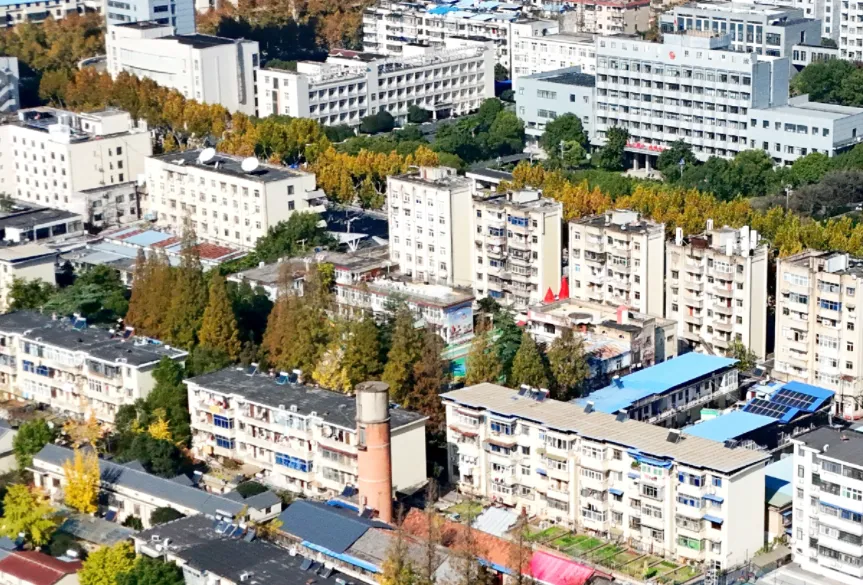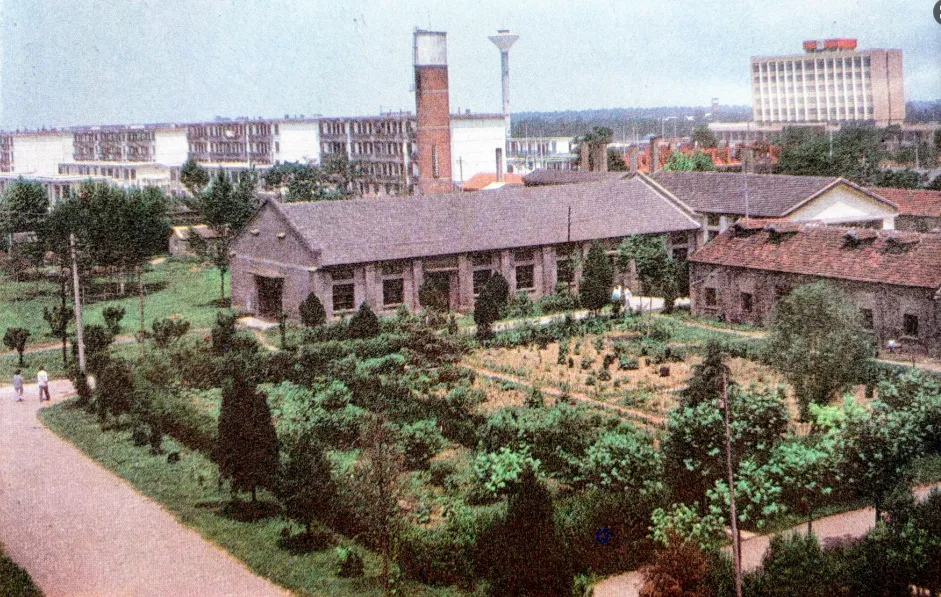 下图为1985时年阜阳行署家属院里的红砖白头的老式水塔。与红砖水塔并排远处还有一个新水塔。红砖水塔前一个老式小院,绿化占地面积很大,老房子很有年代感,整个建筑小区布局很宽敞,看着也爽目。右上角的行署大楼外观是黄色的,顶部是红色的。