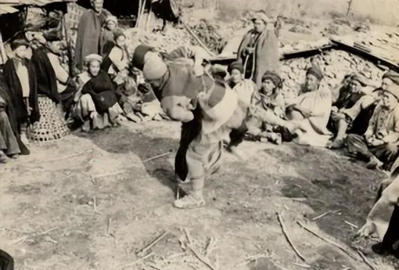 老人手里一只小碗,指尖捏着谷粒往空中一撒,嘴里像在念什么,胡子在风里抖三下,谷粒落回掌心,他又慢慢抬手撒开,那时候的人啊,日子再苦,也要给心里留一点神圣的光。