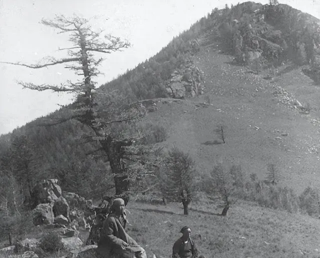 这两位挑着包袱,停在稀疏的冷杉边喘气,山风把衣角吹得起皱,石头上长了苍苔,走旱路就这样,脚底板全靠麻鞋咬住路,没啥可讲的,累字一个。