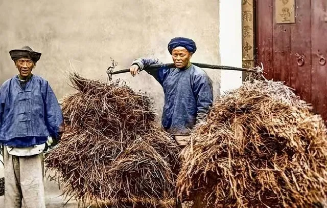 这个扁担两头挂的全是稻草秧子,扎得圆滚滚的,杆子是老楠竹,肩窝处裹布,走起来吱呀响,老板笑得见牙不见眼,城里人一捆一捆买去铺圈。