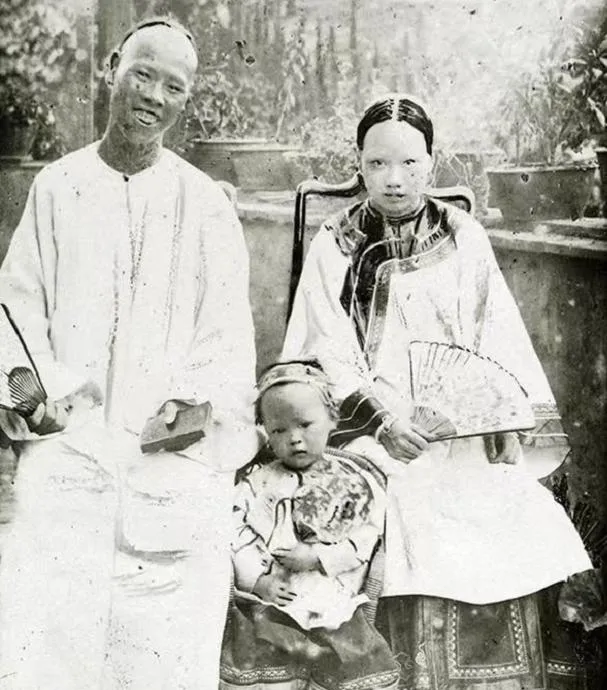 男人笑得开,露一口大牙,女人端着团扇,小娃在中间困得要打盹,衣料虽旧,缝得利落,坐姿正,就图个体面,爸说那会儿拍照要“坐相”,照相先生会把你胳膊腿摆来摆去。