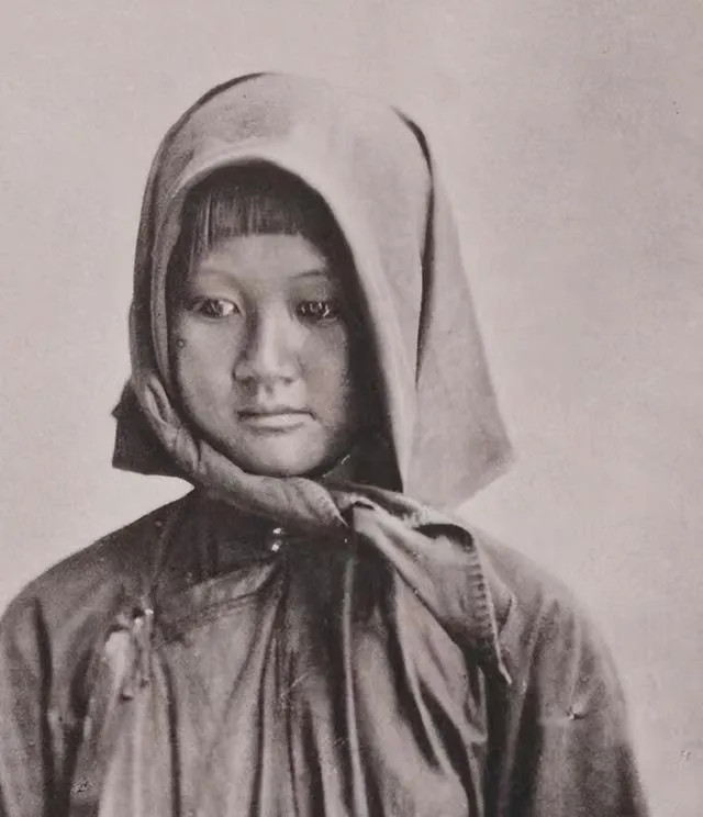 这孩子披着头巾,眼里有光,衣服打着补丁,风一吹巾边翘起来,像在笑,拍照的看着她,她却不看镜头,低着头想事儿。