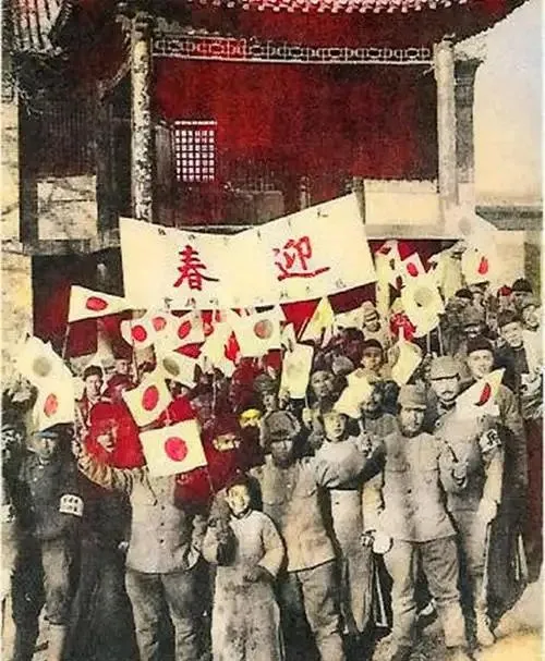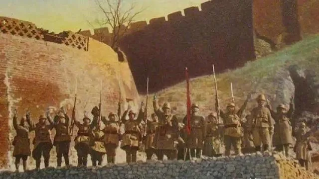 这张是“占领留影”,城砖泛黄,旗杆斜斜地立着,一排人把枪口朝天,比剪刀手更刺眼的是刺刀尖儿,照完相转身就去下一处,城下的哭声隔着墙也能听见。