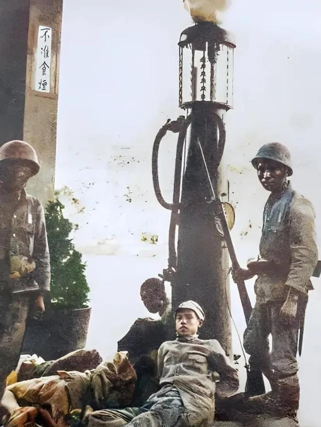 最后这张,汽油泵笔直立着,像一根冷铁,年轻的战士被绑在旁边,眼里没有服软,周围人影把他围住,手电一照,影子拖得老长,像一条黑蛇盘在脚边,那一刻,谁都知道,黑夜快要过去了。