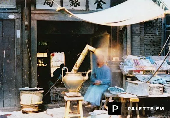 这个铜家伙叫行茶大壶,铜胎黄亮亮的,壶肚圆鼓,细长的壶嘴像只鸟喙伸出来,壶盖上压着一块布防尘,伙计一边烧柴一边抖风箱,水开了就往大碗里冲砖茶,来往客人蹲在门口踩着门槛,一碗下肚,解渴又解乏,掌柜的笑嘻嘻说,早上最忙,挑夫车把式全来这里续劲儿。