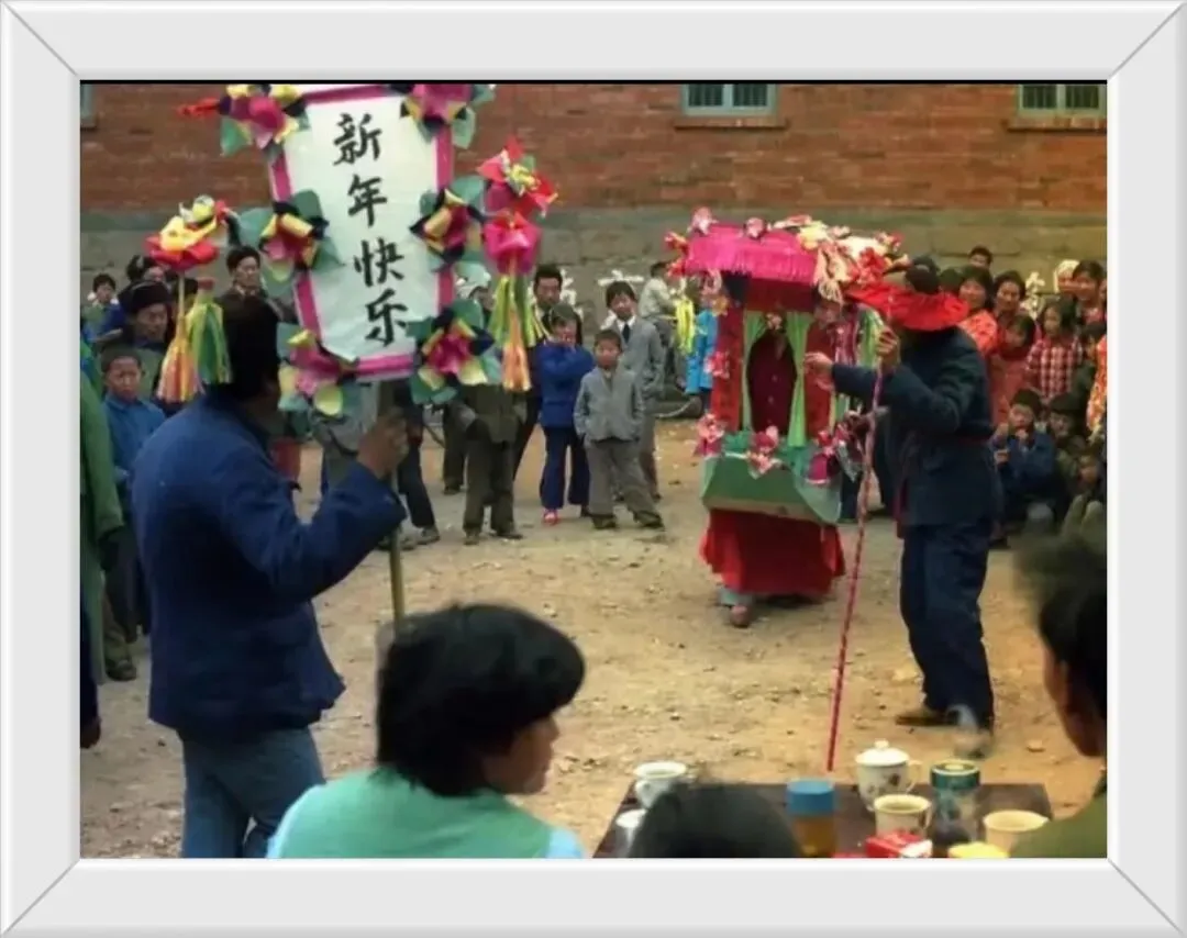 2. 乡村里的春节文艺演出。演员们画着浓艳夸张的戏装,穿着滑稽的衣服,有人扮演小丑。还有划旱船,见过吗?就是用木头和布做成的船的样子,人在穿中间,拿着一根浆在那一边划一边走。十里八乡都来凑热闹,人山人海,挤不动。3.民间社火里的旱船,红绸子、绿纸壳糊出来的造型,虽然简陋,在当时那可是压轴的节目。举着彩牌、推着旱船的大叔,穿的都是藏蓝色的工装棉袄,这在当年可是最常见的打扮。看热闹的街坊邻居,大人挤在一起,说着笑着,小孩子小脸都冻得通红,也不回家。没有大舞台,没有好道具,简简单单的热闹,最实在的过年,总感觉心里热乎乎的。