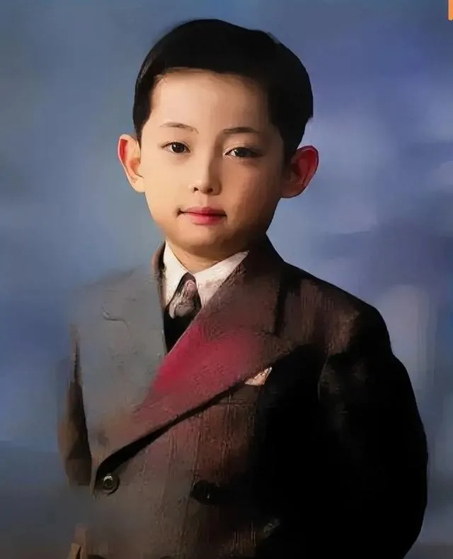 图中这位小绅士穿的是呢子西装叫洋装,深灰配黑马甲,领口一枚细窄领带,头发抹得服帖,耳朵红扑扑的,站在暗蓝背景前气定神闲,妈妈说这身行头够一月伙食钱,那时候能穿得起洋装的,家里不是商号东家就是洋行雇员。