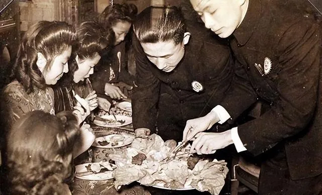 这桌菜叫自助,盘里切成小块的牛肉,服务生端着大盘子挨个夹,领口小花别得端正,屋里灯光黄得暖,表弟那阵学会拿刀叉,回家还要照葫芦画瓢。