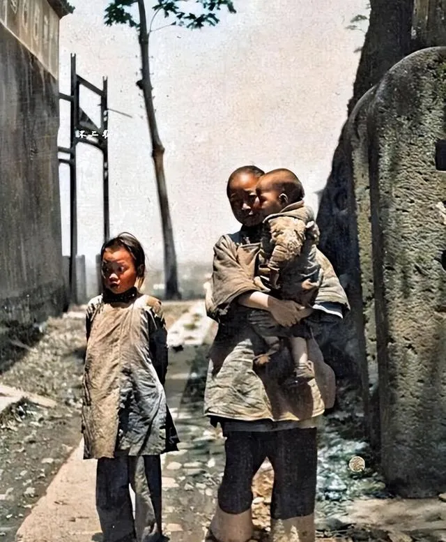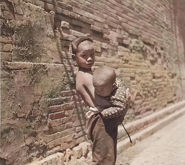 民国儿童老照片:有钱人锦衣玉食,穷人家玩泥巴,外出逃荒最可怜。
