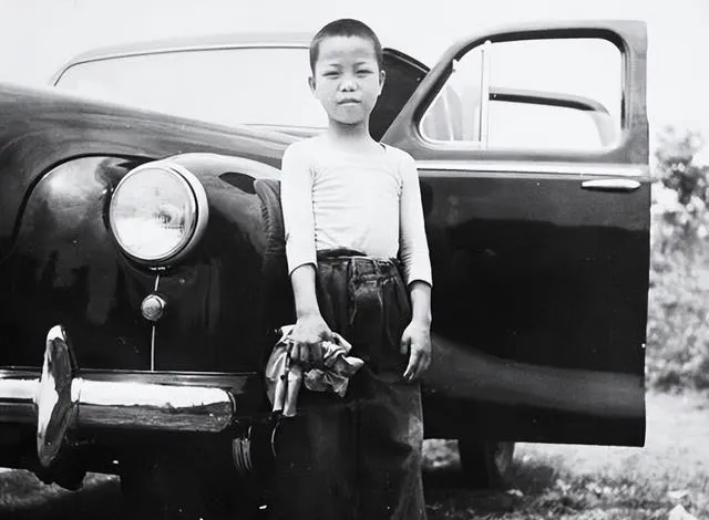 这辆是洋车,镀铬的灯罩亮得晃眼,小男孩捏着手套站在车门边,袖子短裤腰高,脸上那股子自信不像同龄人,邻居说他家有司机,这话足够在巷子里传一阵。