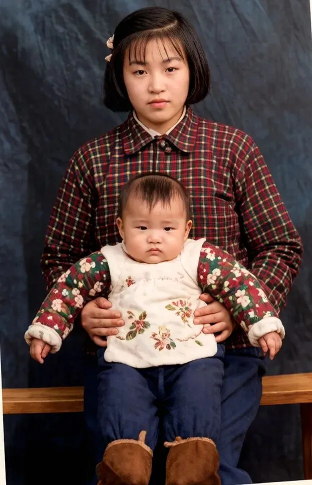 母亲抱着幼年的大姐的留影,也是六十年前了。用软件处理了一下,清晰了很多,黑白照片变成了彩色。