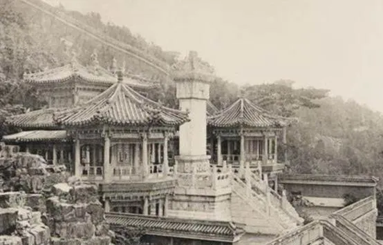 这个灰影里的楼阁就是园子里的石舫旁院,台阶收得紧,石栏杆打磨得亮,游人是进不来的,只有轿子能抬进去转一圈,想想现在坐地铁去公园,一块钱进门摇扇纳凉,时代就这样拐了个弯。