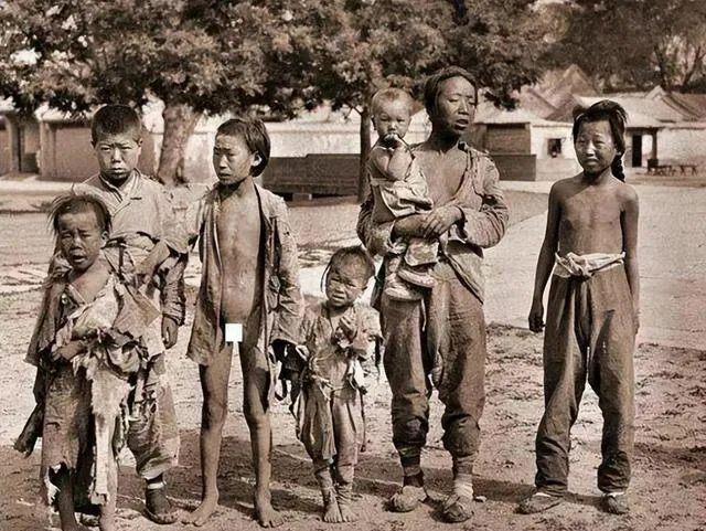 这几个娃娃站在日头底下,露着瘦肋骨,最小的还没鞋,哥哥把弟弟抱在胳膊弯里,谁说穷人才不讲体面,站着也要站直,风把他们的头发吹得像杂草一样乱。