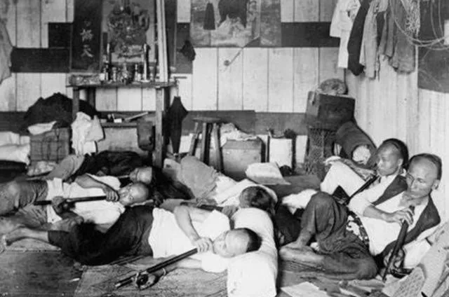 屋里挂着神龛,草席铺在木板上,几个人侧卧着,烟枪斜靠枕边,窗缝里透进一条白光,空气像黏住了,爷爷说最怕亲戚沾上这个,一沾就像掉进坑里,怎么也拽不上来。