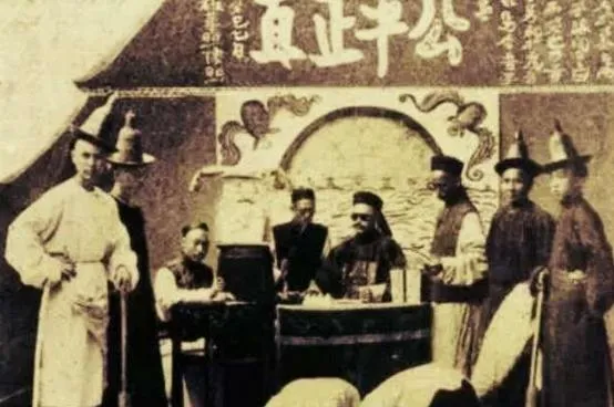 公案前坐着戴眼镜的官,墨镜是新潮货,旁边师爷提笔点字,门口堆着麻袋,牌匾上写着公平正直四个大字,抬头一看挺唬人,低头一看还是那一摊老泥。