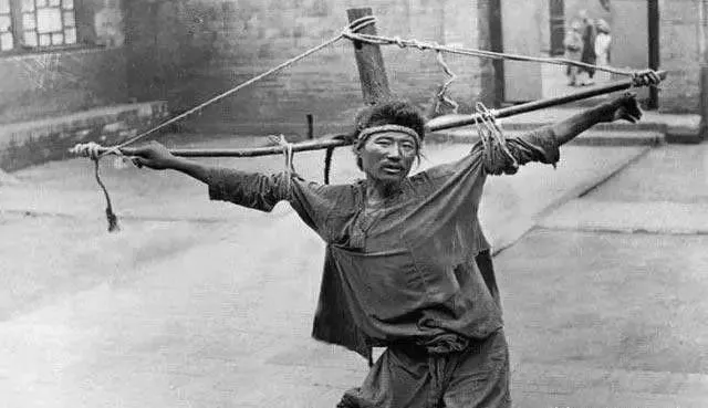 木杆绑在背上,绳子勒出白印,脚下还得往前挪,两边的人看着不敢近,男人却咧嘴笑,像在故作轻松,实际上肩胛骨都要裂了,这就是那阵子的硬。