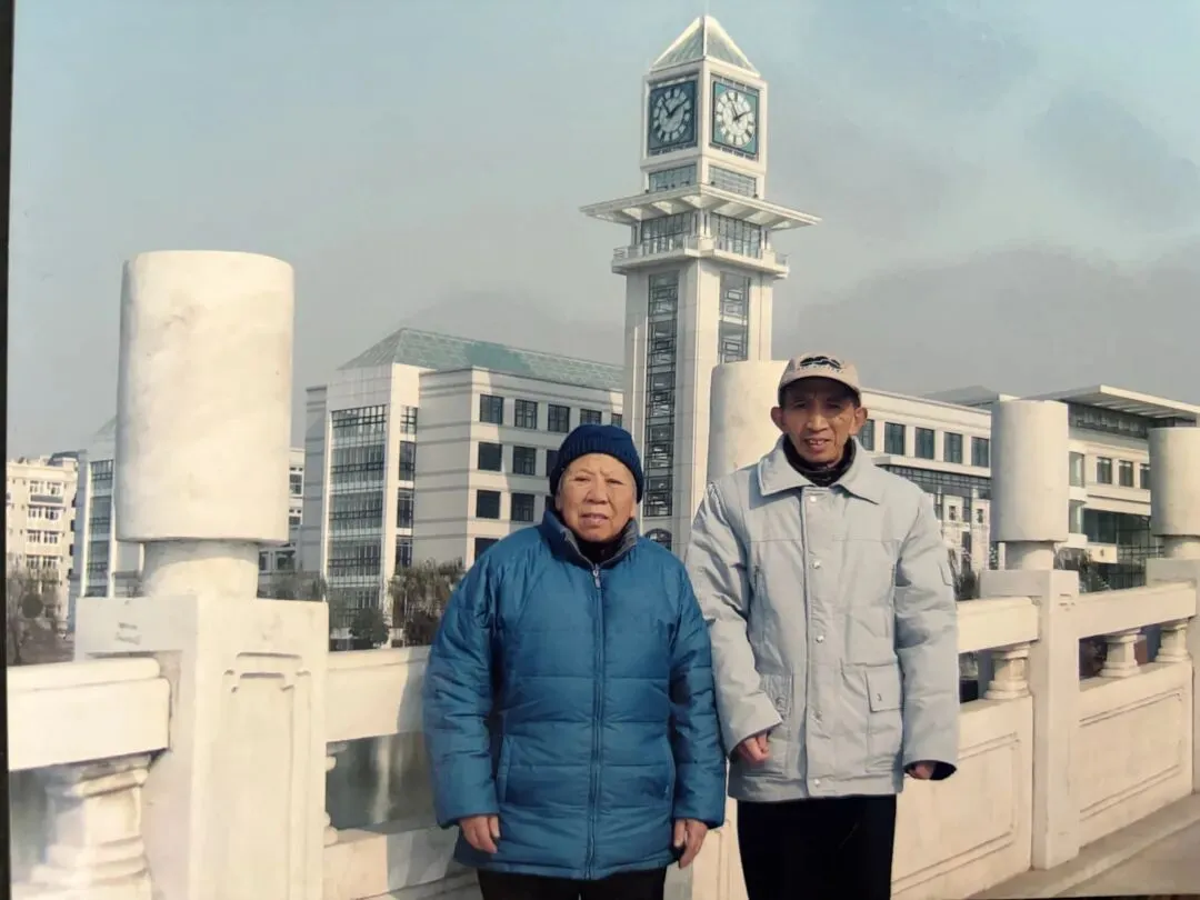 在家中翻看影集,看到一张老爸老妈在文波楼前的合影,照片背后的题字:2025年元旦摄于文波楼前。照片背后的故事清晰起来。
