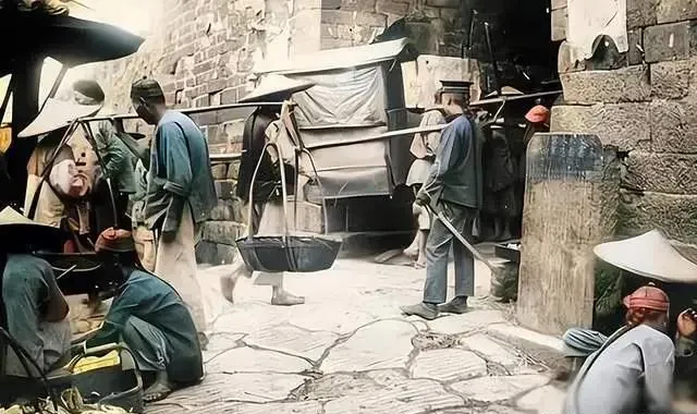 这个街口的木架子叫小轿,旁边人挑着铁锅竹篮,石板路被脚板磨得发亮,脚步急,话不多,做的是天亮到天黑的活计,那会儿赚的是饭钱,不是梦。