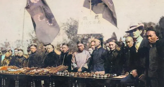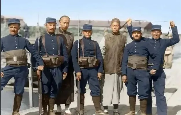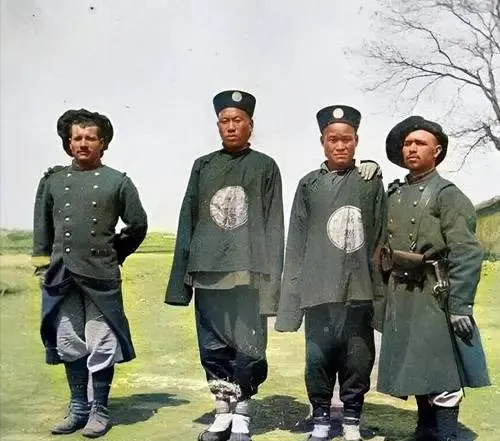 这身绿呢制服胸口绣着圆补,袖口磨白,靴面抹油发亮,几个人肩并肩,脸色却不一样,有人朝镜头笑,有人只看地上,不说话各有各的心思。
