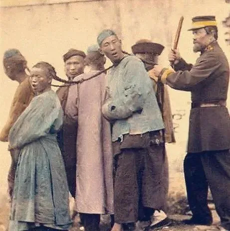 这个铁链子穿过几个人的脖颈,后头那根木棍一戳就能把人拦住,脸上的灰尘糊了一层,眼神躲不掉,照片再看一眼,心里就堵上一块。
