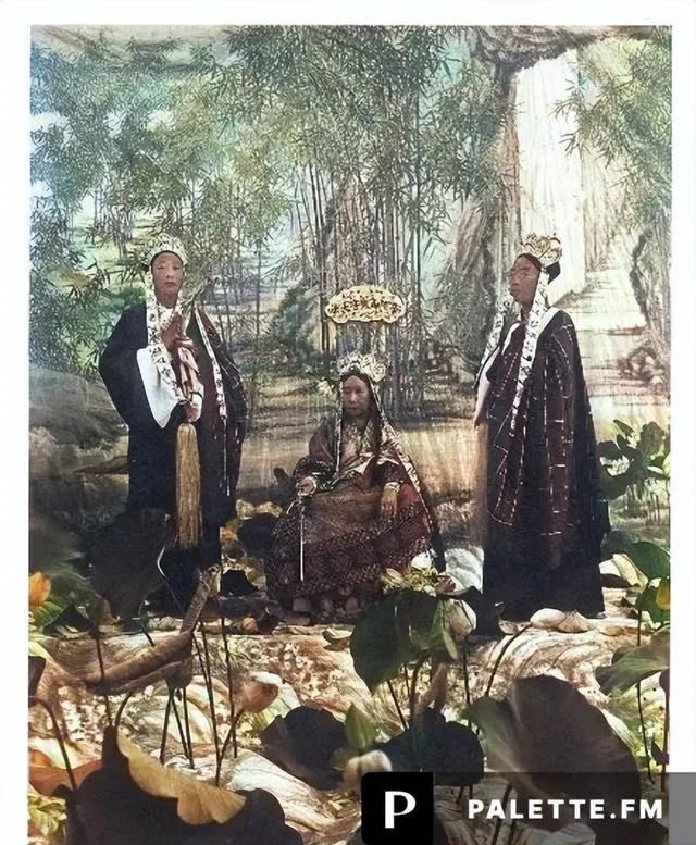 这几位手持法器站侧前,叫礼佛照相的程序,帽顶花叶高高起,袖口里藏着细细的手串,摄影师让人别眨眼别动,三声数完,底片吃光,就把那一刻安安稳稳留住了。