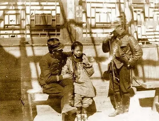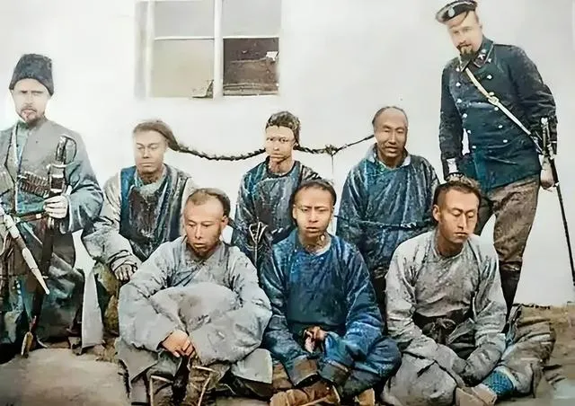 这几位垂着头的叫俘虏,辫子被拽着扎到一块儿,眼皮沉得像挂了秤砣,旁边的带刀洋兵单手插腰,笑得微微的,像在看新鲜耍猴,照片拍得很清楚,却也最让人不想看清,脸一抬,都是耻。
