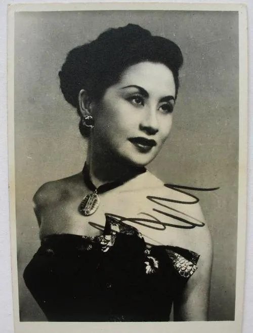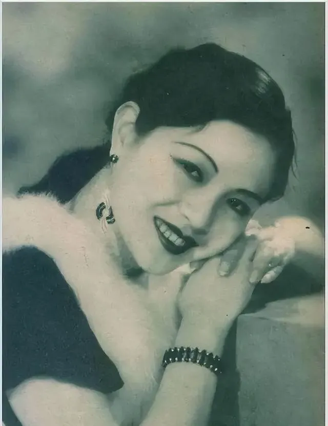这几张都是影室打光,黑白里把眉峰挑得干净,露肩长裙是当时的时髦货,布料走的是亮面缎,灯一打,线条像水一样流动,唱片封面那张笑得很“华丽”,字母花体绕着老式话筒打转,放在留声机旁,针头一落,沙沙声一出来,屋里就有了年代味。