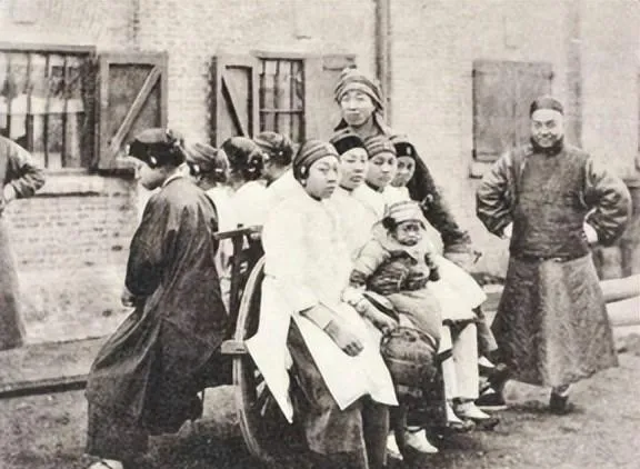 这个场景叫“赶集歇脚”,几位妇人围坐在木板车上,黑布头帕挨着白布长衫,怀里的娃困得直打盹,车轱辘沾着土,旁边男人叉腰打量镜头,像在说,快点咔嚓一声,我们还得回去做饭呢,以前赶集全靠脚和车,现在地铁一钻就到,节气没变,人心的忙乱倒是多了。