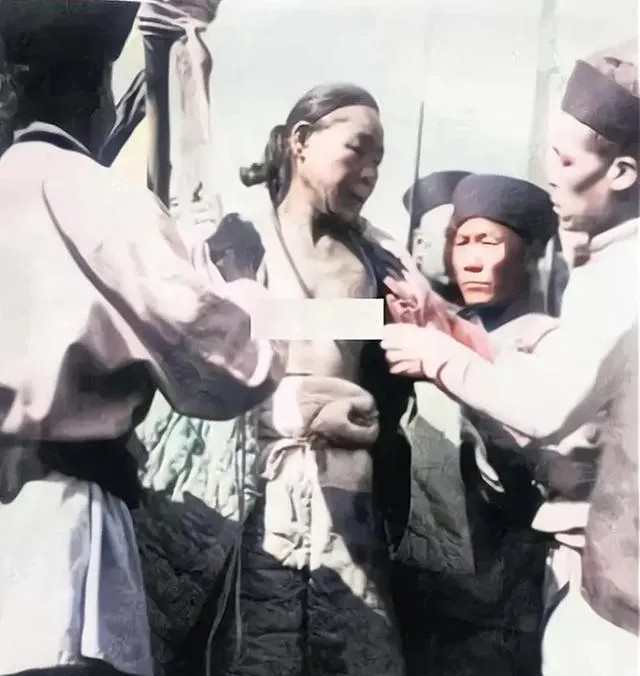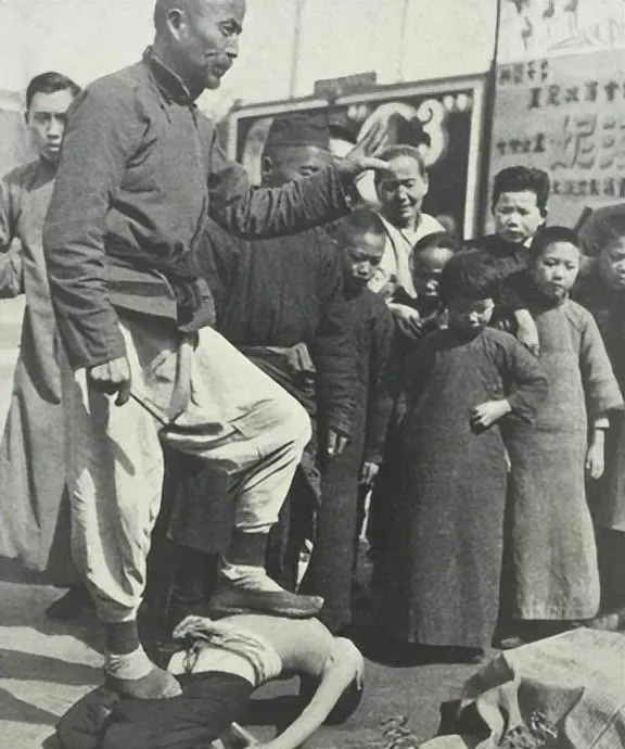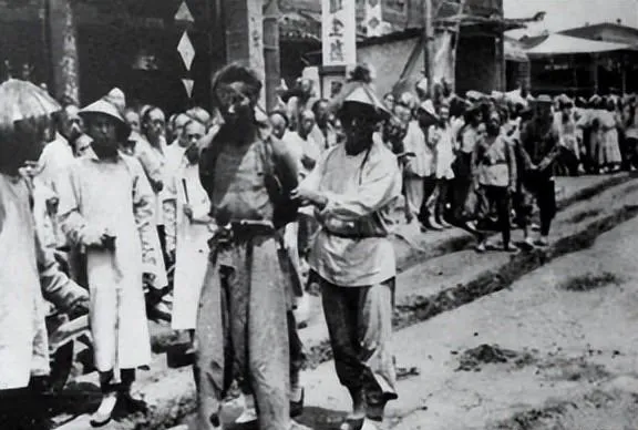 图中这个场面叫“游街示众”,犯人手反绑,前后刀牌押着,街两侧的人跟着看热闹,尘土被脚底搅得直冒,谁也不敢吭声,奶奶提起当年只摇头,说人命轻得像瓦片,掉地上响一声就碎了。