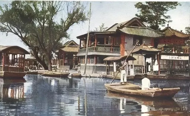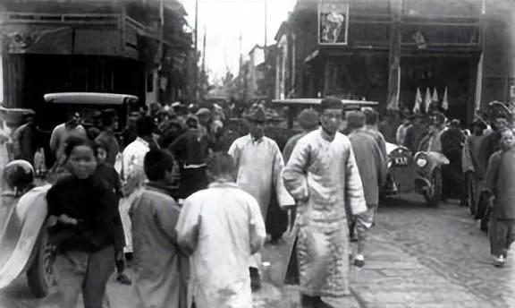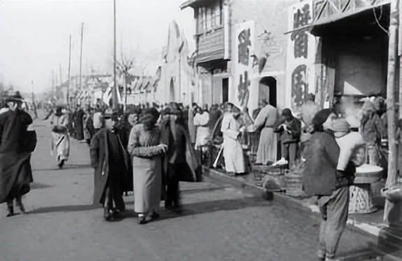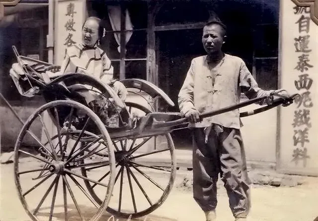这两张的味道各不相同,寺前熙攘,檐角堆着阴影,香火与叫卖声搅在一处,人力车的轮子高得吓人,上车得先提着衣摆,车夫脚背筋挑着,汗顺着鬓角流,车上一位小少爷笑得没心没肺,时代就是这么夹生,一半甜一半涩。