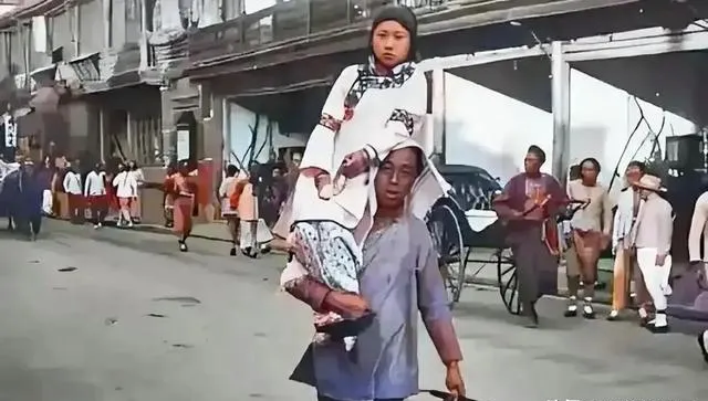 这些画面连在一起看,就懂了什么叫旧礼俗,裹脚把步子勒窄了,祠堂门楼却把家声架得很高,贵妇骑着小黑驴,前后都有仆人牵着,月塘边有人洗菜,有人打趣,一边是规矩压身,一边是生活自顾自地热着。