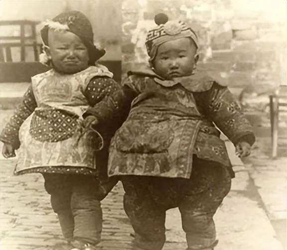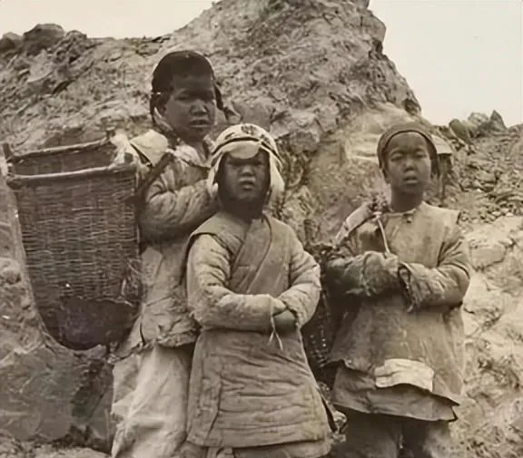 前一张让人沉,三个孩子背着竹筐,耳边风呼啦地刮,脸上的土抠都抠不下来,后一张又忍不住笑,两个胖娃套着棉袍,迈开小短腿要学大人走路,左边那位还噘着嘴,像要哭又没哭出来,日子就是这样,一边苦一边乐。