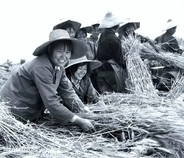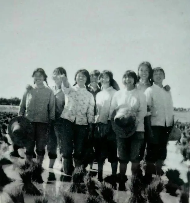 这个场景叫插秧歇脚照,裤腿一卷到膝弯,脚指头在水田里摸到硬泥就站稳,草帽夹在臂弯里,谁喊一声看这边,全笑开花,那会儿没谁教摆姿势,笑是从心底往外冒的。
