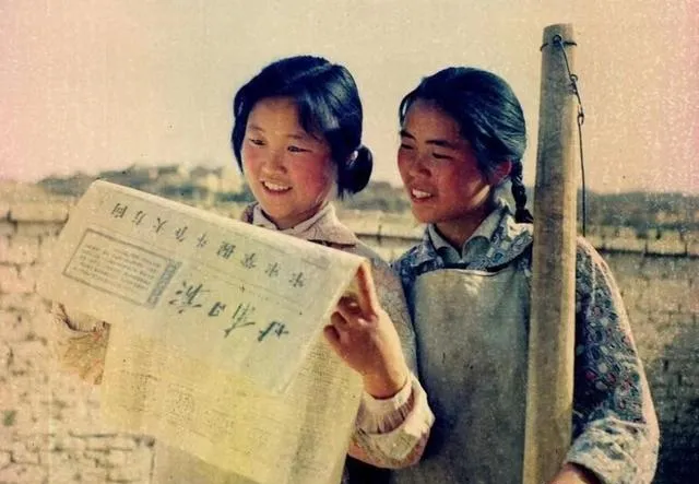 图中这一张叫红字头版,纸张发脆,边角被手汗磨得起毛,姐妹俩凑在一处读新闻,笑着指那行粗字,说咱们县上又表扬了谁谁谁,我爸在旁边插句嘴,说看报最怕牛嚼了,得卷好塞进衣襟里。