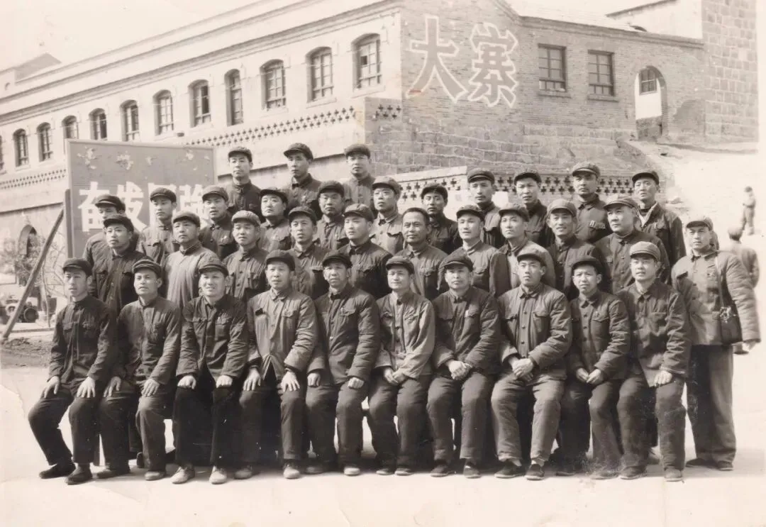 20世纪70年代,桓台县赴山西省昔阳县大寨大队参观学习者在大寨合影留念。一排右三为田庄人民公社大庞大队党支部书记殷佃宝。(照片提供者:殷茂林)