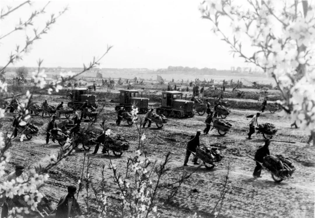 1973年桓台县民工团会战黄河南展工程—刘统爱摄影