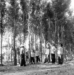 上图为20世纪70年代初,桓台县唐山人民公社后七大队社员进行树木病虫害防治—刘统爱摄影