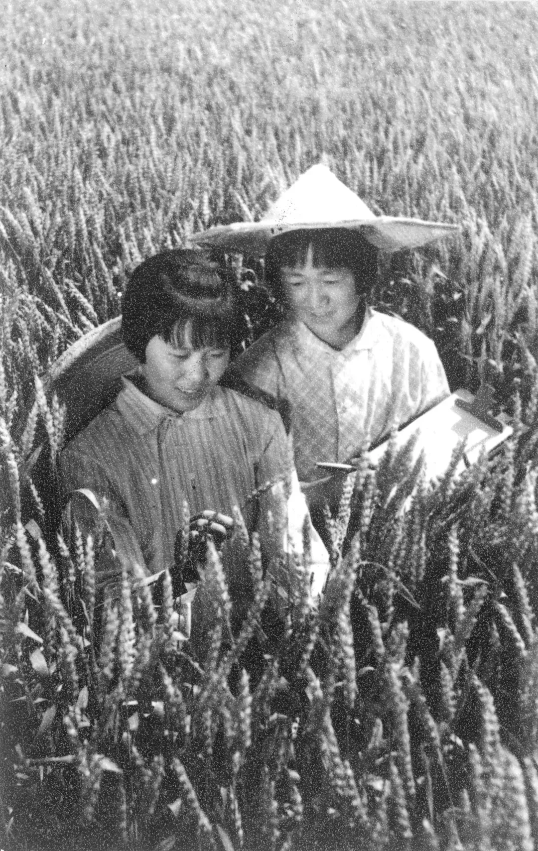 上图为20世纪70年代初,桓台县女青年在实验队麦田记录科研数据—刘统爱摄影