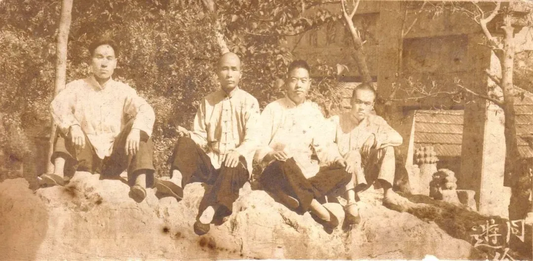 民国年间,桓台县西张家埠村(今果里镇西埠村)祁兆彬、祁兆梅、祁兆桂兄弟仨与周村固玄庄的李其权合伙在徐州市开办铜匠铺,专做铜烟袋。上图为祁兆彬(左二)与合伙者在徐州的合影。(照片提供者:祁汝森)