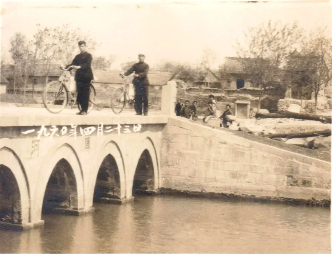 1960年4月23日,索镇供销社杨桥门市部组长段怀书(右)和营业员常兆明(左)骑自行车下乡归来。(照片提供者:段怀书)