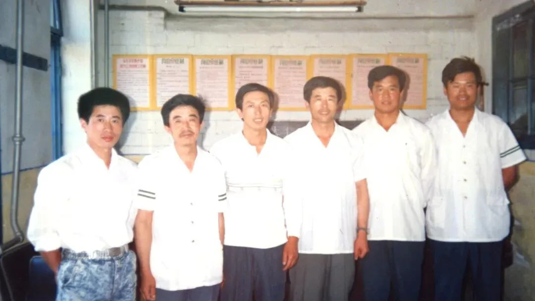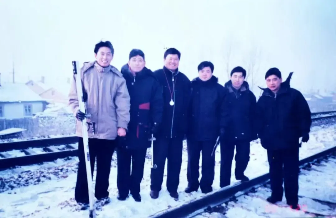 1991年,铁力工务段技术室主管(左一王忠、左二赵明、左三闫英伟、左四韩志伟、左五殷炳来、右一唐靖海)合影。