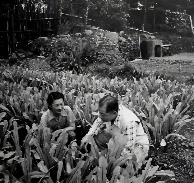 张学良以前用过的双手曾经指挥过千军万马,现在却拿起锄头去种地了。他在屋前开了一块菜园子,栽上了大白菜、葱蒜等蔬菜。照片中他戴着斗笠挽着裤腿给菜浇水时的眼神比打仗还要专注