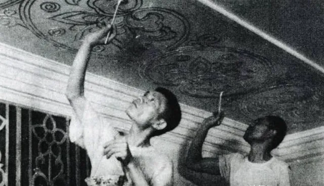 图中师傅在做的是沥粉贴金,细笔挑着粉线,一根根挑直,再覆金箔,屋里闷热,他却不抬头,师父在旁边提醒一嘴,别贪快,金口要利落,等灯一亮,光线顺着纹路走,你才知道什么叫“里子面子都要讲”。